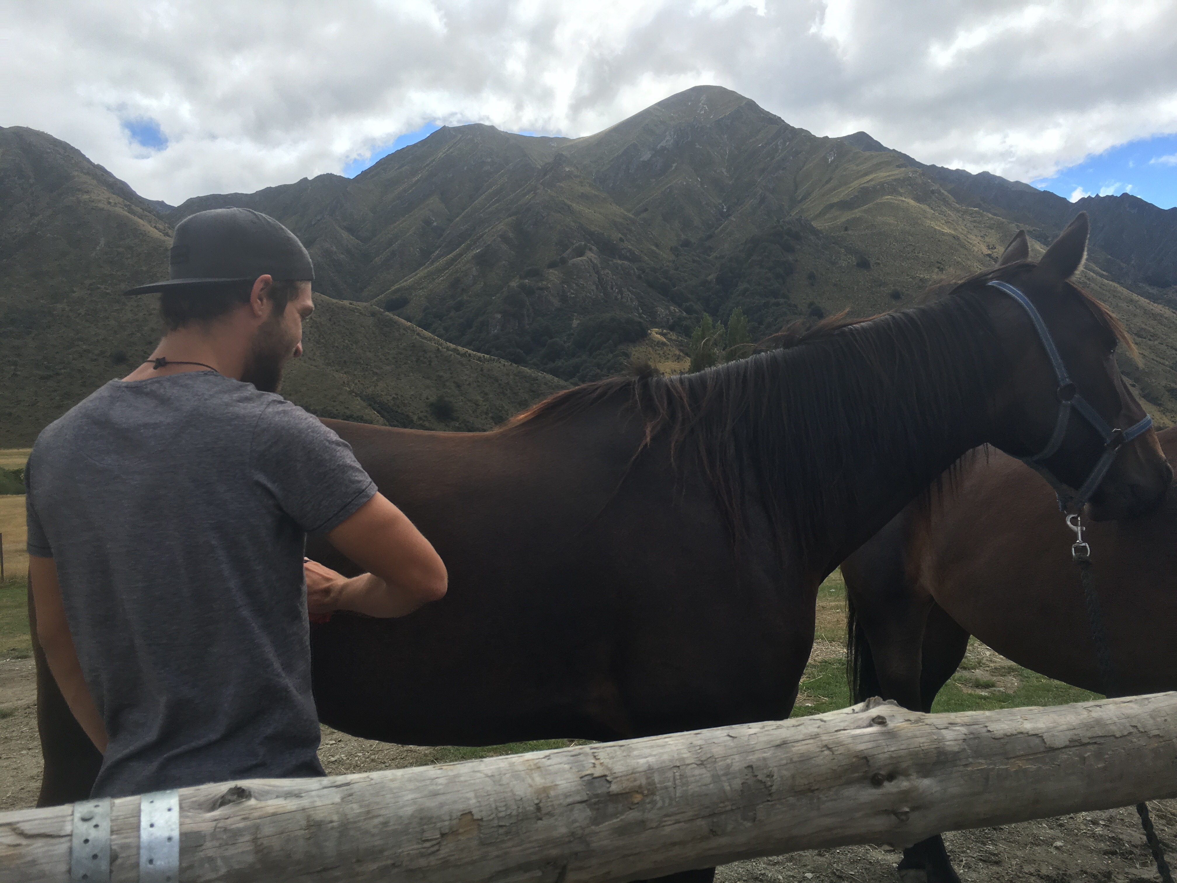 So, that’s what I did. I hopped in the car and off we went. They decided to drive to Glenorchy which is about an hour out of Queenstown but we took a detour to Moke Lake on the way. I probably should have been sitting in the back like.. Okay now I’m gonna be killed but instead I was enjoying their music choices. The guys were super keen to pet the horses so naturally we had to make our way over to them.