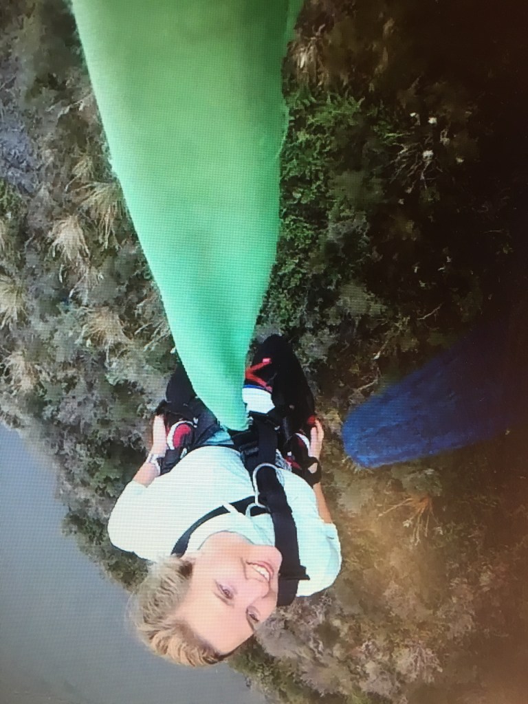 The next morning I did the “highest cliff jump in the world”. Here’s the deal.. Those guys are way too good at their job. We were taken up in a van to the site where we had to hike over to the platform. I actually met a guy who had lived in Missoula Montana for 6 years that was working there. SMALL FREAKING WORLD. We put on our harnesses and you are required to wear closed toed shoes (<–why does that look weird? Not sure) anyways, yeah so mine were stolen in Auckland so my only options were my hiking boots or climbing shoes.. I went for the climbing shoes.