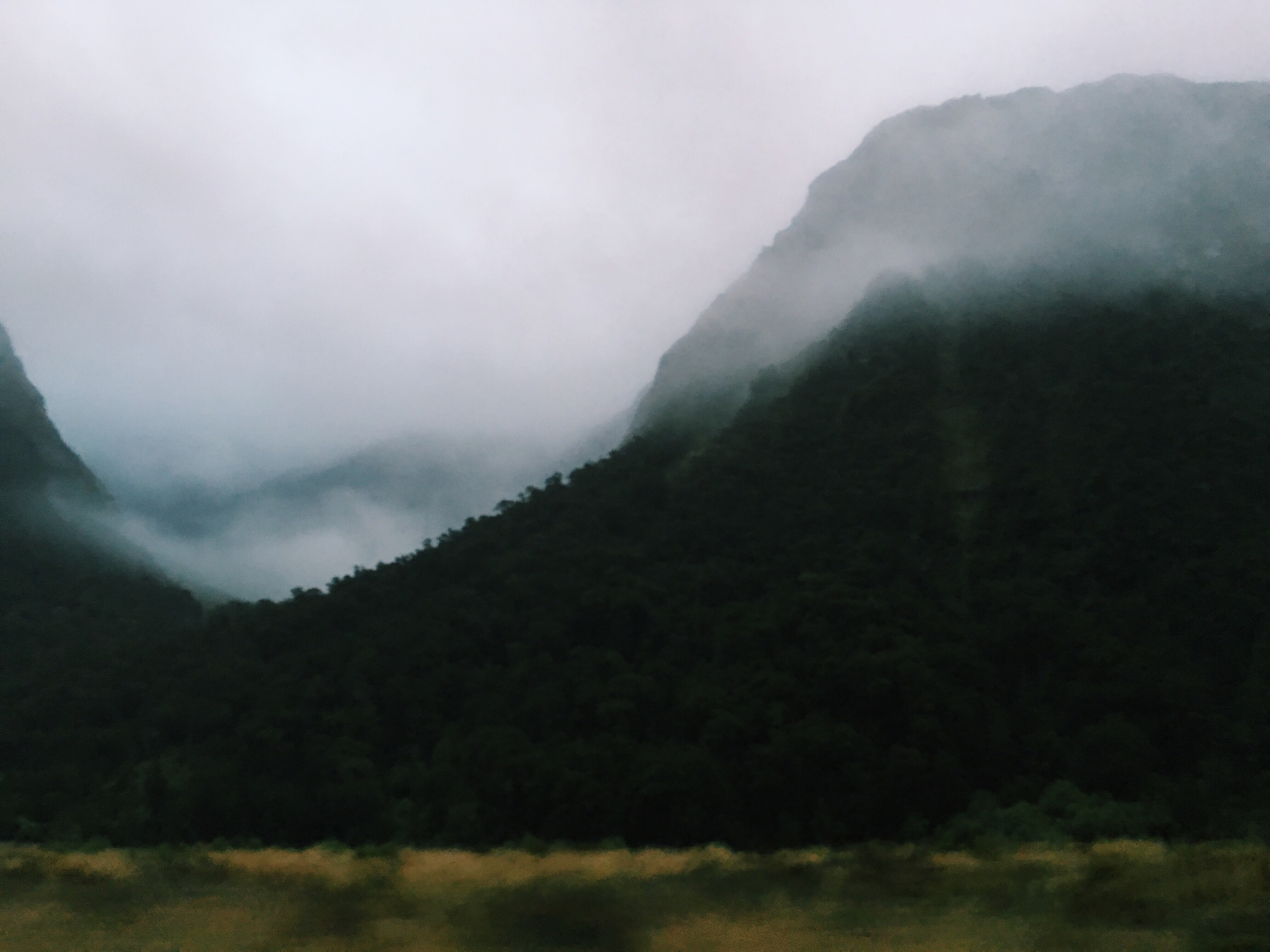 The next day we went to the very well known Milford Sound. It’s apparently rated as one of the most amazing things to do in New Zealand and maybe even beyond. I don’t know the details you can google it if you wanna fact check me. The drive over was incredible. We left around 6 or 7 am (I didn’t journal the time so of course I forgot.. Bad memory. Not important. Continuing on..) and it was pouring rain the entire drive but we were surrounded by the incredible scenery of Fiordland.