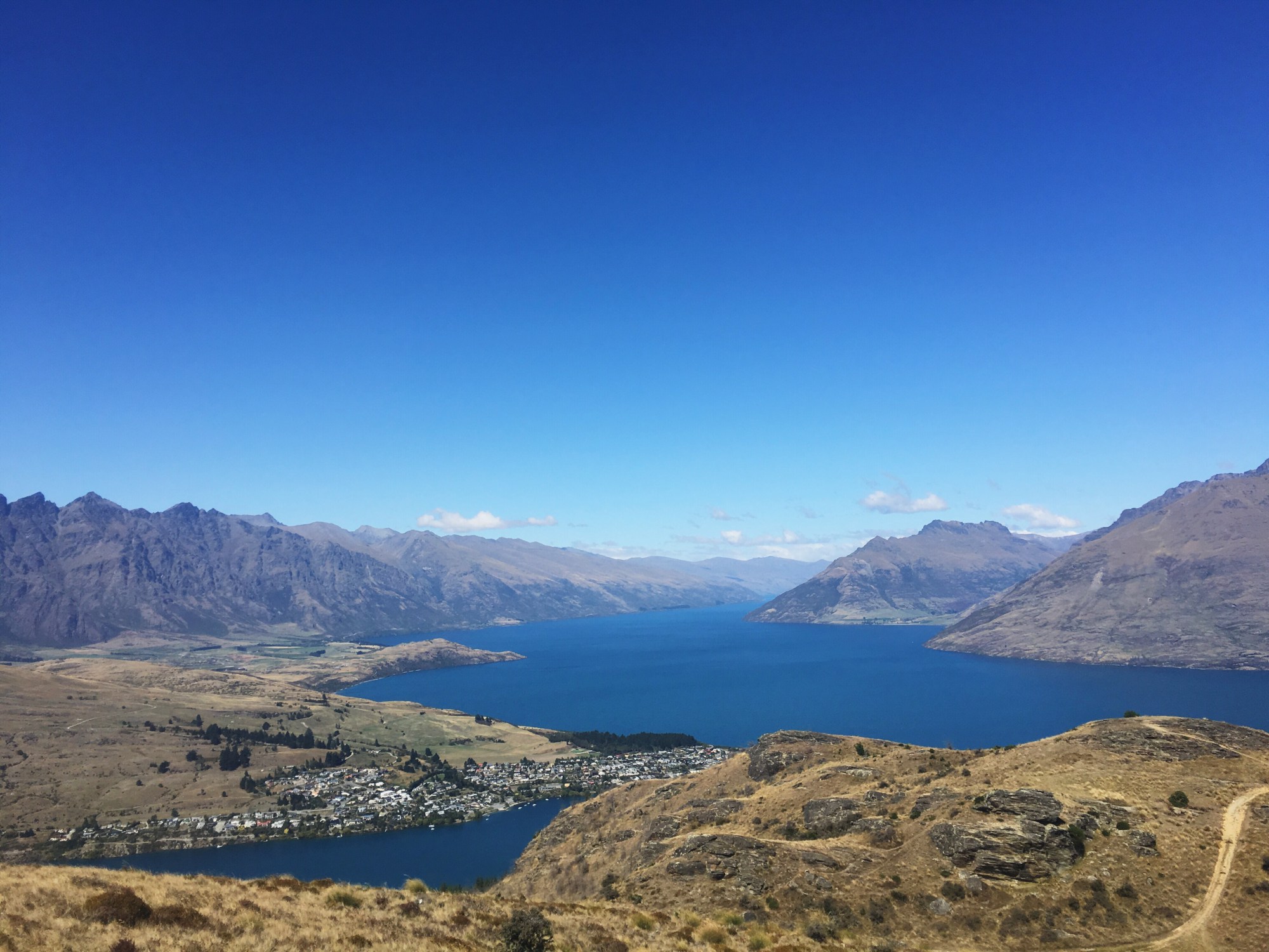 I continued on and reached the top. The wind was about to blow me away but the view of the Remarkables ski range and Lake Wakitipu was incredible.