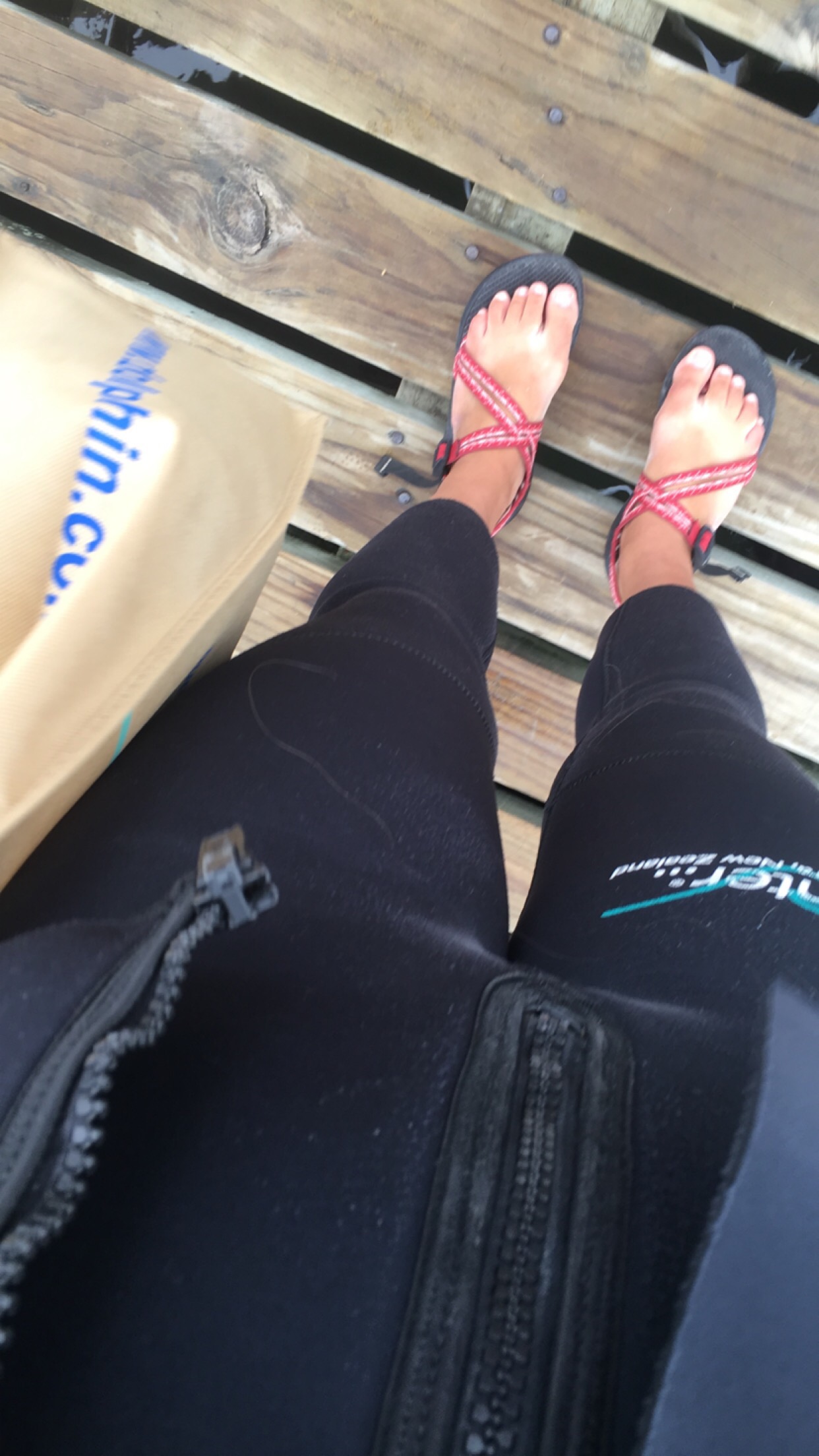 They had one opening so I took it right away and headed off to the office. They said the waves were really rough and that I needed to be very comfortable in open water and comfortable snorkeling because there would be times I wouldn’t be able to see the boat. Uh duh I can do that. (Except I had never actually snorkeled before and hadn’t really been in the middle of the ocean. Oops) Once there they sent me back to a room to get suited up. I was looking pretty snazzy in my wetsuit and flippers.